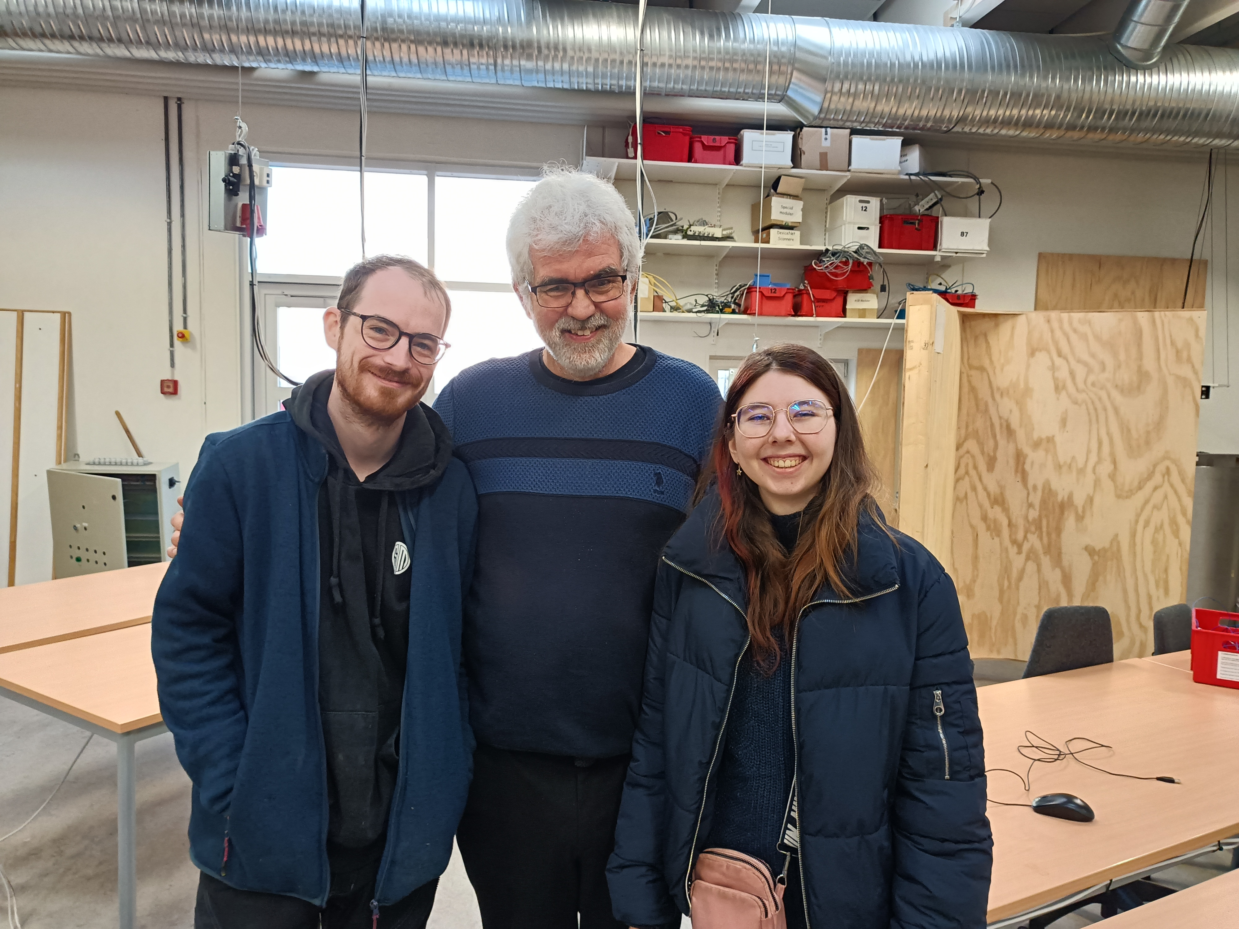 Per le professeur d'électricité et référent de Mara surveille l'avancée et la qualité de leur travail.